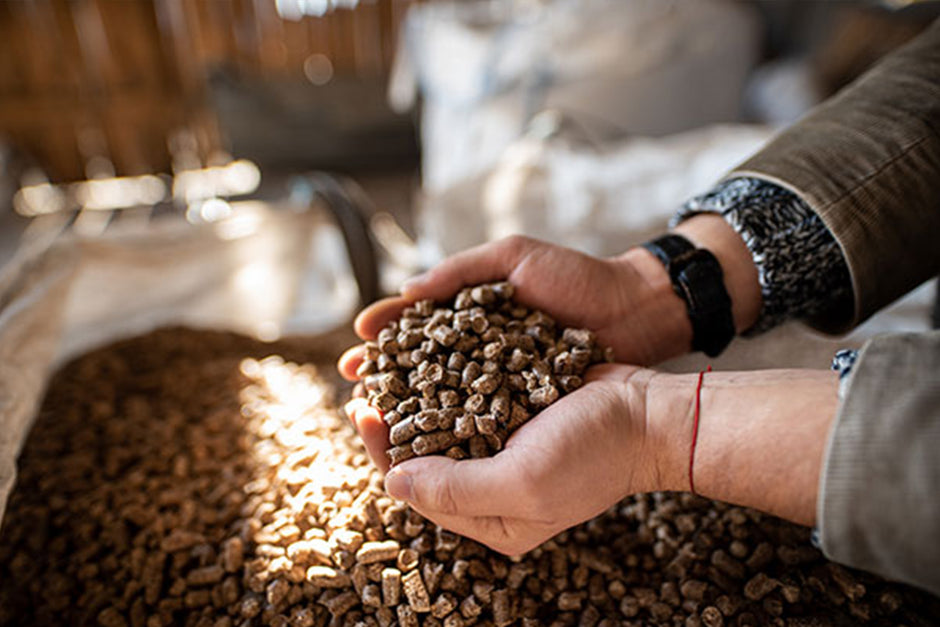 Die Holzreste werden zunächst getrocknet und fein zerkleinert, bevor sie unter hohem Druck ohne chemische Zusatzstoffe verpresst werden. Durch die beim Pressen entstehende Wärme aktiviert sich die natürliche Ligninharzstruktur des Holzes: Sie wirkt als Bindemittel und verleiht den Pellets ihren typischen Glanz. Lediglich bis zu 2 % Stärke dürfen optional zugesetzt werden, um die Bindung zu optimieren. Abschließend werden feine Partikel ausgesiebt, sodass ein sauberes, dichtes und leistungsstarkes Pelletprodukt entsteht.